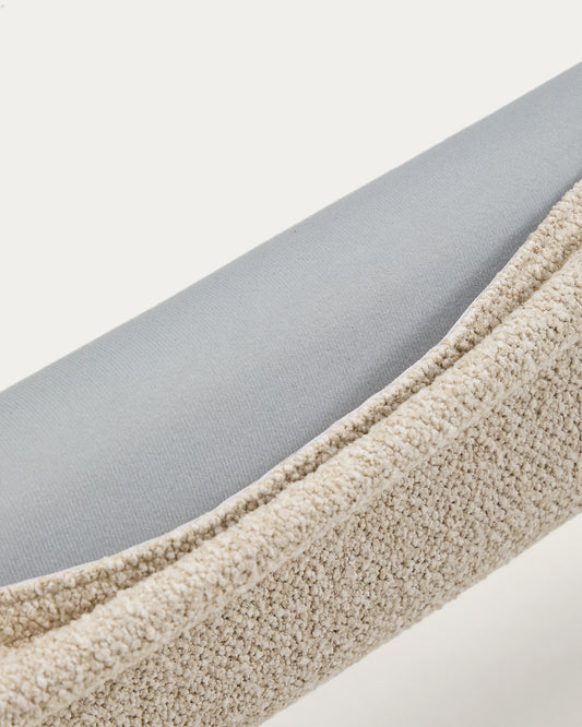 Odina ecru bouclé bed with removable cover and solid ash wood legs with walnut finish for 160 x 200cm mattress
