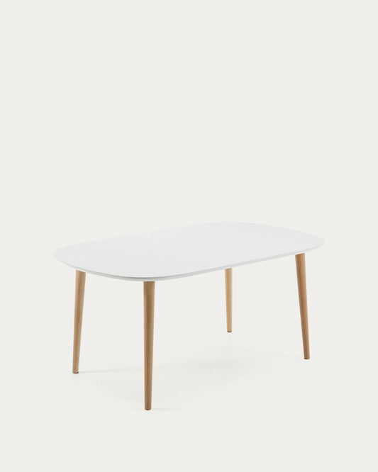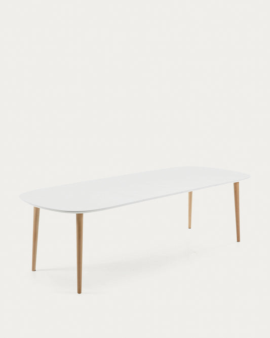 Oqui extendable oval table with an oak veneer and solid wood legs, Ø 160 (260) x 100 cm