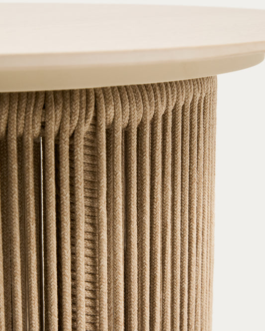 Orosei outdoor side table in sintered stone, aluminium and ecru rope Ø 55 cm