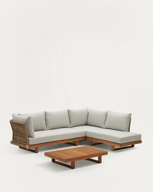 Raco 5 seater corner sofa and coffee table, made from solid acacia wood