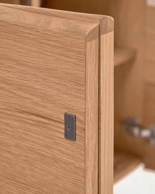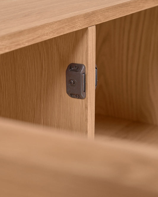 - Sideboard with four doors in oak veneer with a natural finish.