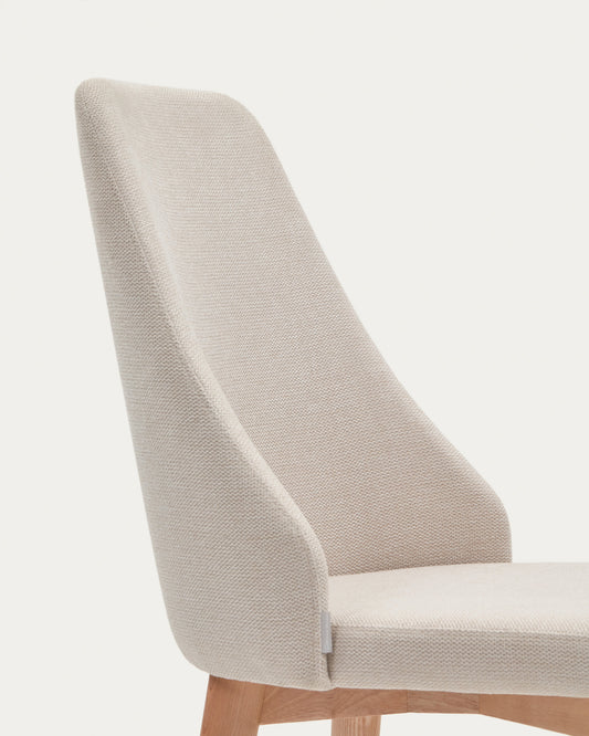 Rosie chair in beige chenille with solid ash wood legs in a natural finish