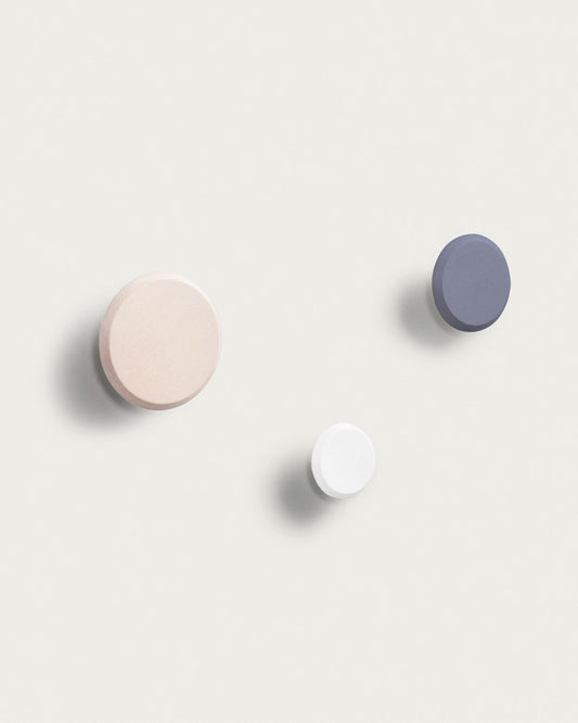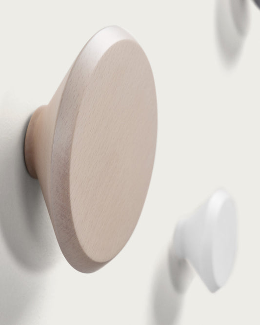 - Set of 3 solid beech wood wall hooks.