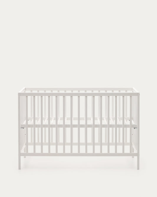 - Cot made of solid beech wood with white finish.