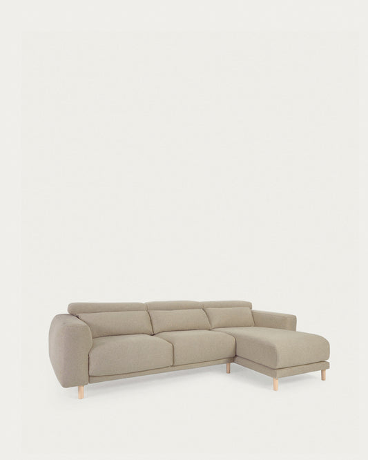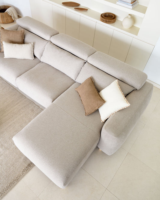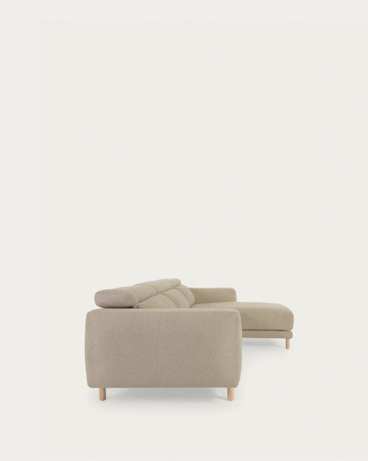 Singa 3 seater sofa with right-hand chaise longue, reclining headrest and extendable seat in beige 296 cm FSC Mix Credit