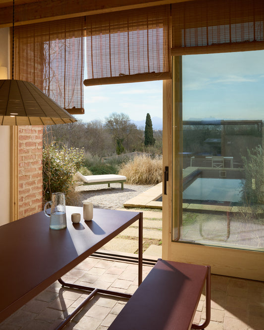 Sotil Set of 2 Benches and Galvanized Steel Table with Garnet Finish 183 x 83 cm