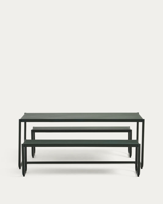 Sotil Set of 2 Benches and Galvanized Steel Table with Green Finish 183 x 83 cm