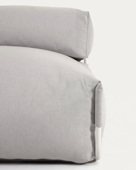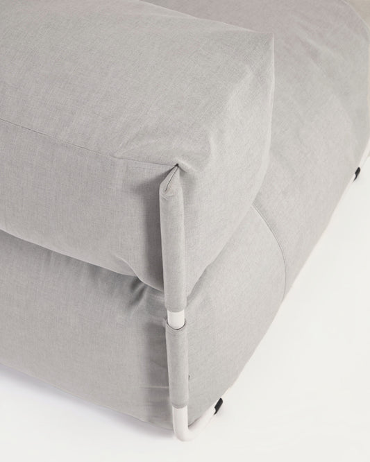 Square chaise longue pouffe with backrest in light grey with white aluminium, 165 x 101 cm
