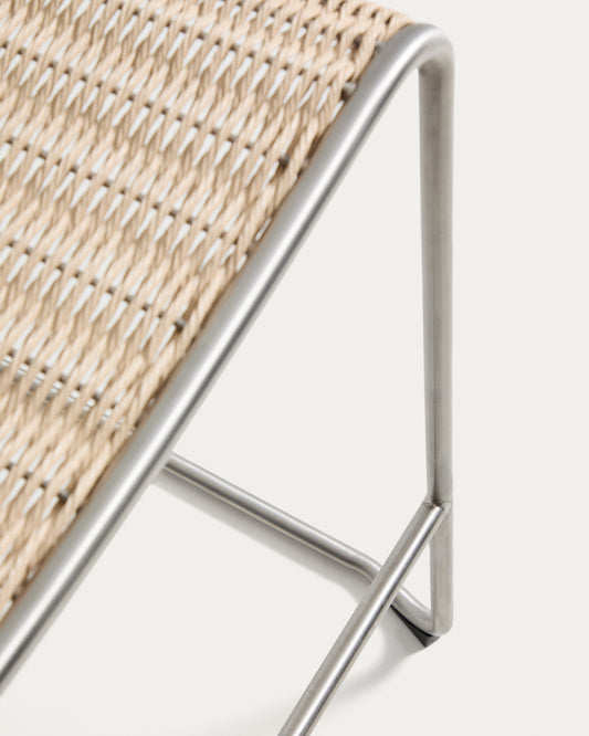 Tavari stackable stool in beige synthetic rope cord and AISI 304 stainless steel with brushed finish 75 cm