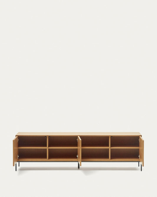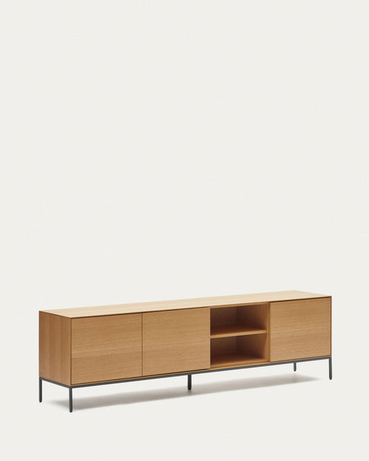 Vedrana 3-door TV stand in oak veneer with black steel legs, 195 x 55 cm
