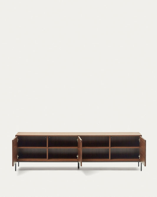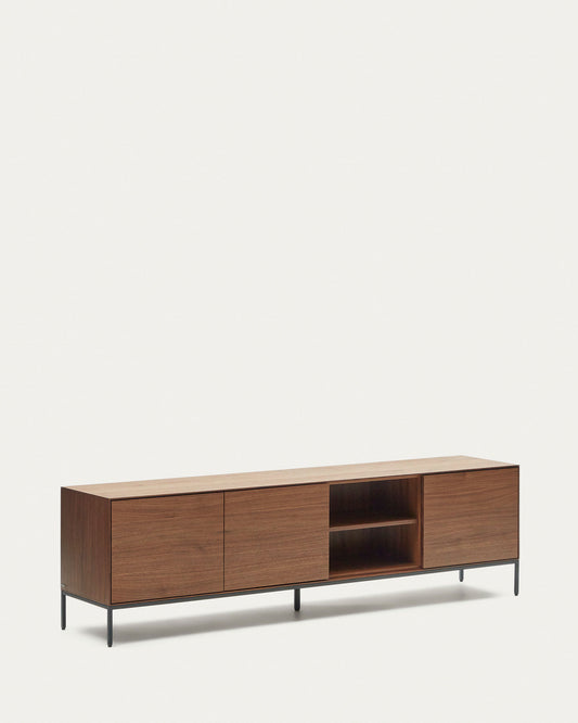 Vedrana 3-door TV stand in walnut veneer with black steel legs, 195 x 55 cm