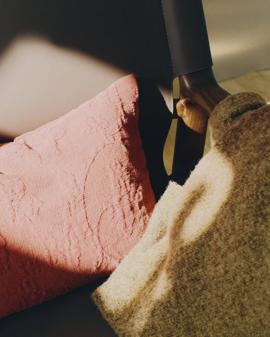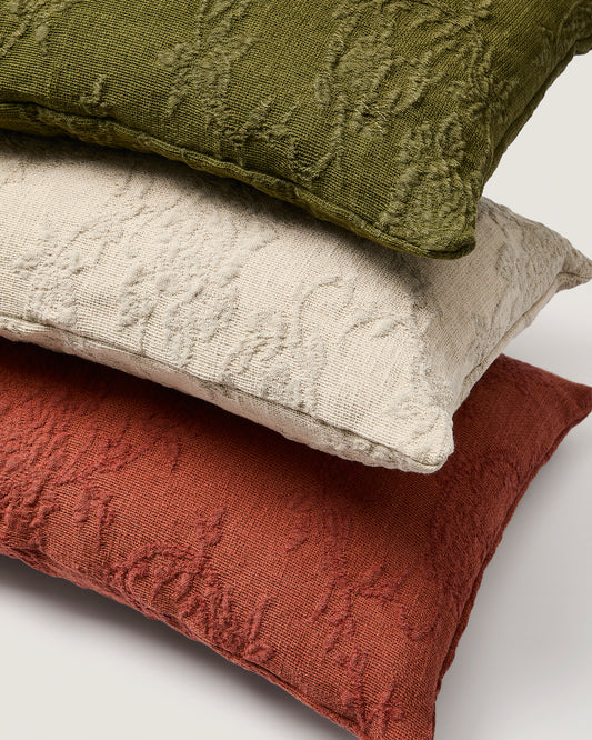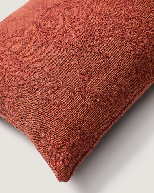 Velina cushion cover in red washed linen jacquard with floral design 30 x 50 cm