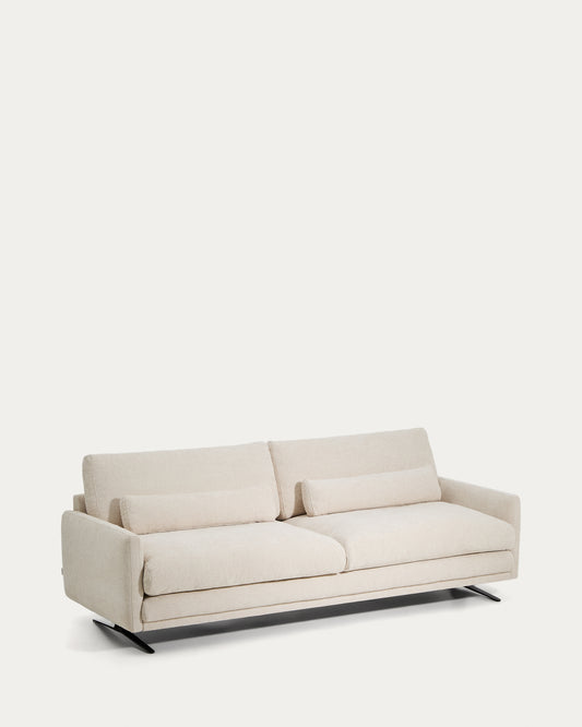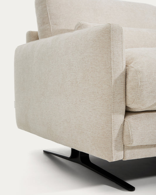 Veliro beige chenille 3-seater sofa with black-finish steel legs 240cm FSC Mix Credit