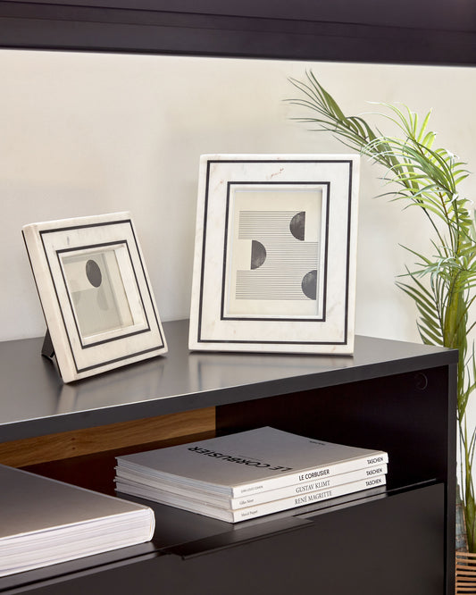 Vittoria photo frame in black and white marble 23 x 18 cm