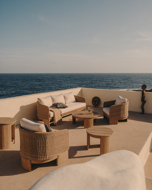 Xoriguer 3-seater sofa in synthetic rattan and solid eucalyptus wood, 223 cm FSC 100%