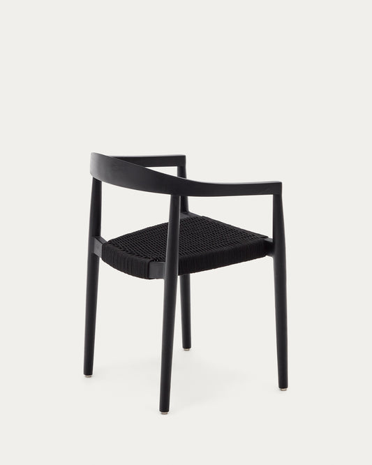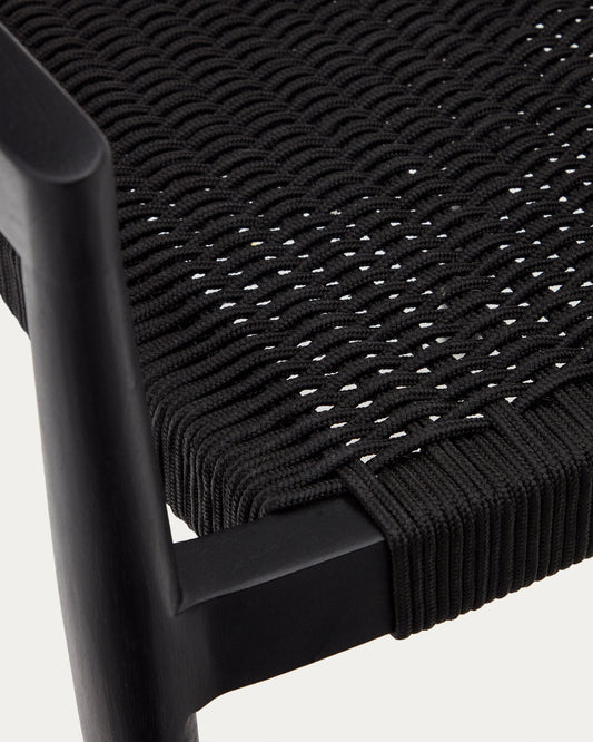 Ydalia stackable outdoor chair in solid teak wood with black finish and black rope